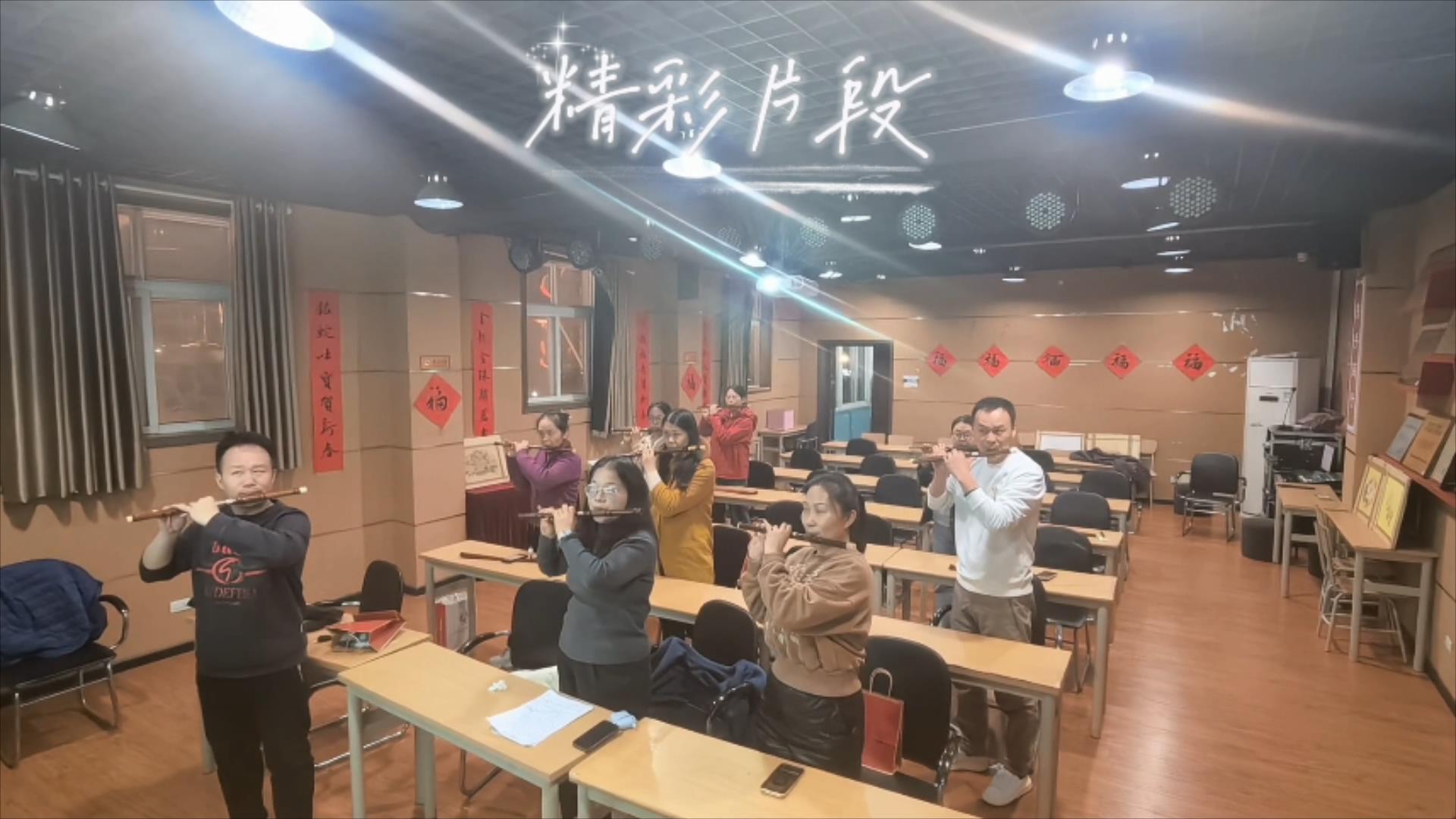 竹笛课教室,李阳老师把经典曲目《茉莉花》拆成四小节循环,先教“气沉丹田”,再带“指打音”。从最基础的持笛姿势、吹响笛膜开始,老师手把手教学,细致讲解每一个动作要领。学员们个个神情专注,写满了新奇与认真。虽然笛声初起,尚显生涩,但那份专注学习的劲头和偶尔吹响的清脆音符,已让课堂充满了勃勃生机。