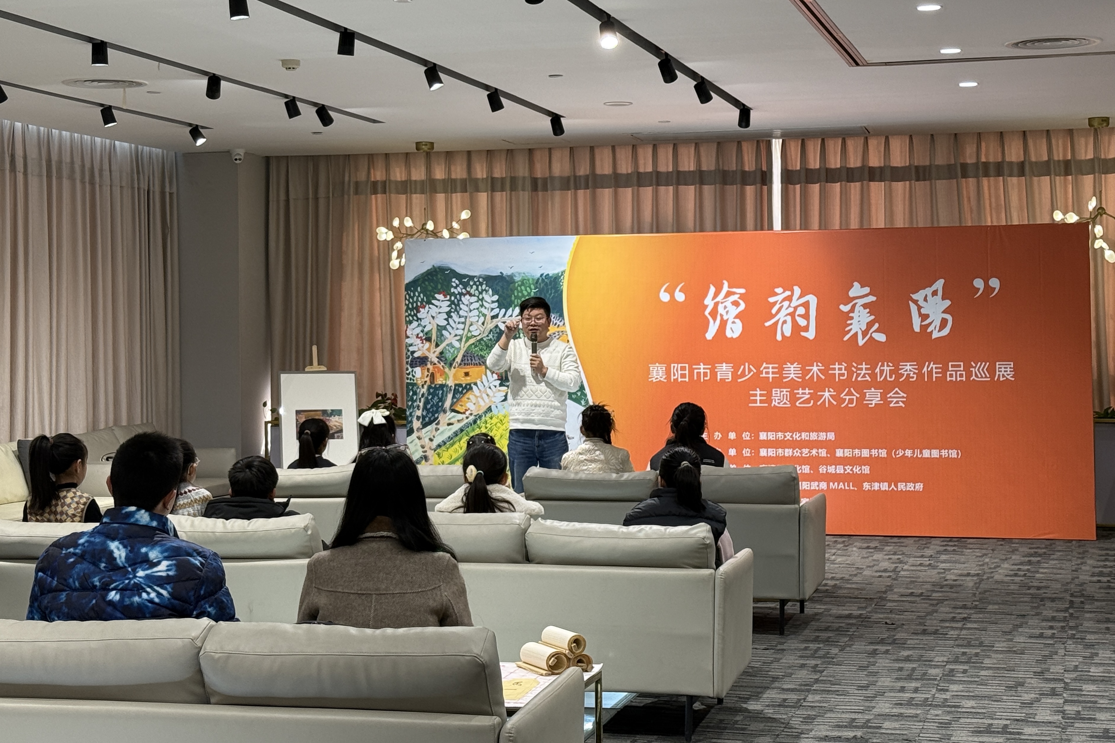 元旦当日还搭配了两场深度体验活动,将观展从“静观”延伸至“互动”。“绘韵襄阳”主题艺术分享会以“元旦新启·我的艺术创作初体验”为题拉开帷幕。这里没有高深的理论讲座,取而代之的是获奖小作者、艺术教师与普通爱好者围坐一堂,畅谈那些“第一次”拿起画笔的笨拙、灵感突至的喜悦,以及在描绘家乡风景时涌动的深情。