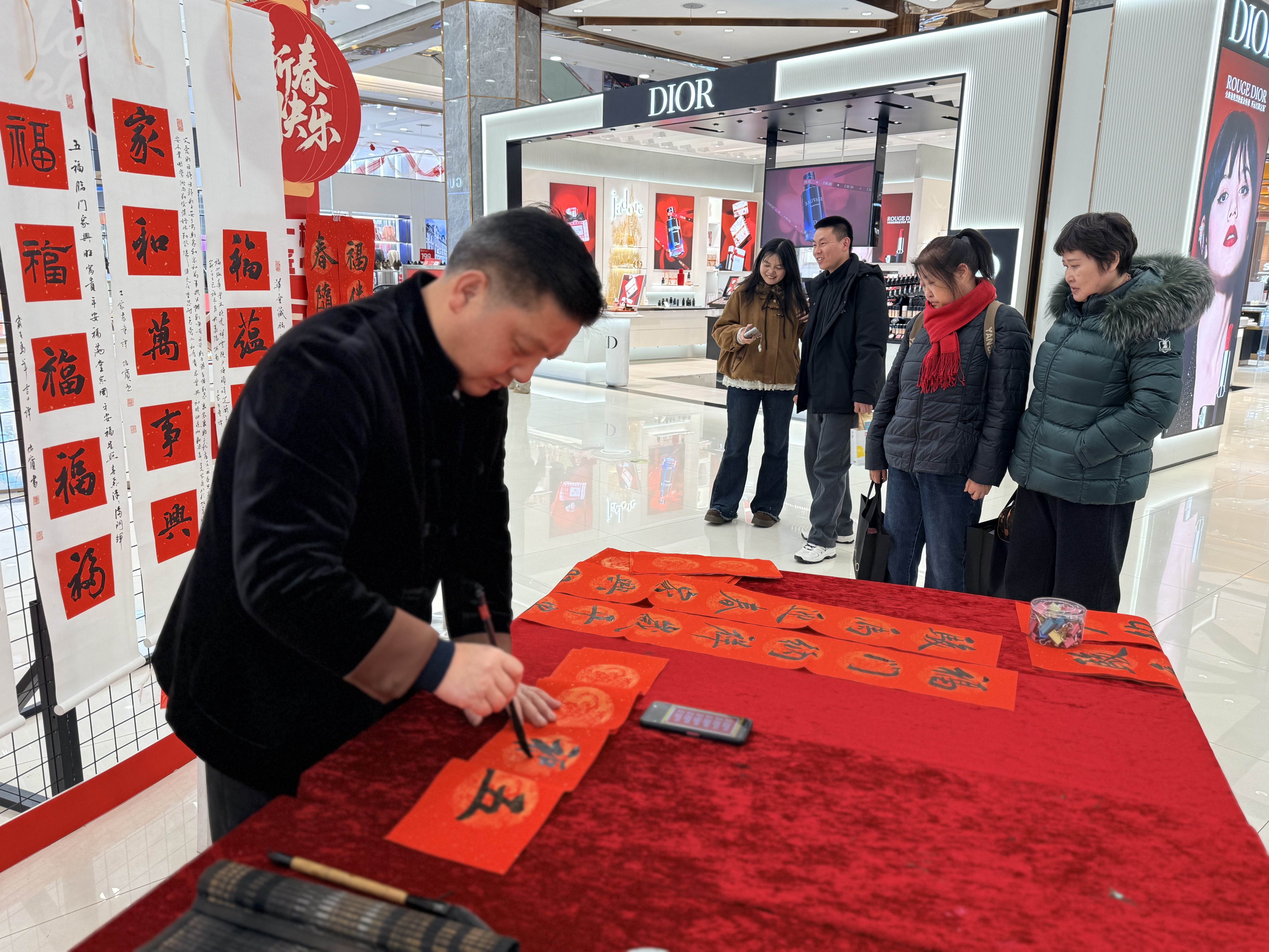 此次送春联活动作为新春系列活动的延续,以“文化送福”为纽带搭建起消费联动桥梁。书法名家现场挥毫的精彩场景,吸引大量市民走进襄阳武商MALL,不少顾客领联后主动驻足参观“绘韵襄阳”巡展,让艺术体验从“提笔瞬间”延伸至“沉浸欣赏”。文化活动的吸引力有效带动了商场人气,而商场的优质空间也为传统文化传播提供了广阔平台,成功实现“文化送福”与“消费惠民”的双向联动,让传统文化在商业场景中焕发活力,也为新春消费市场注入文化动能。