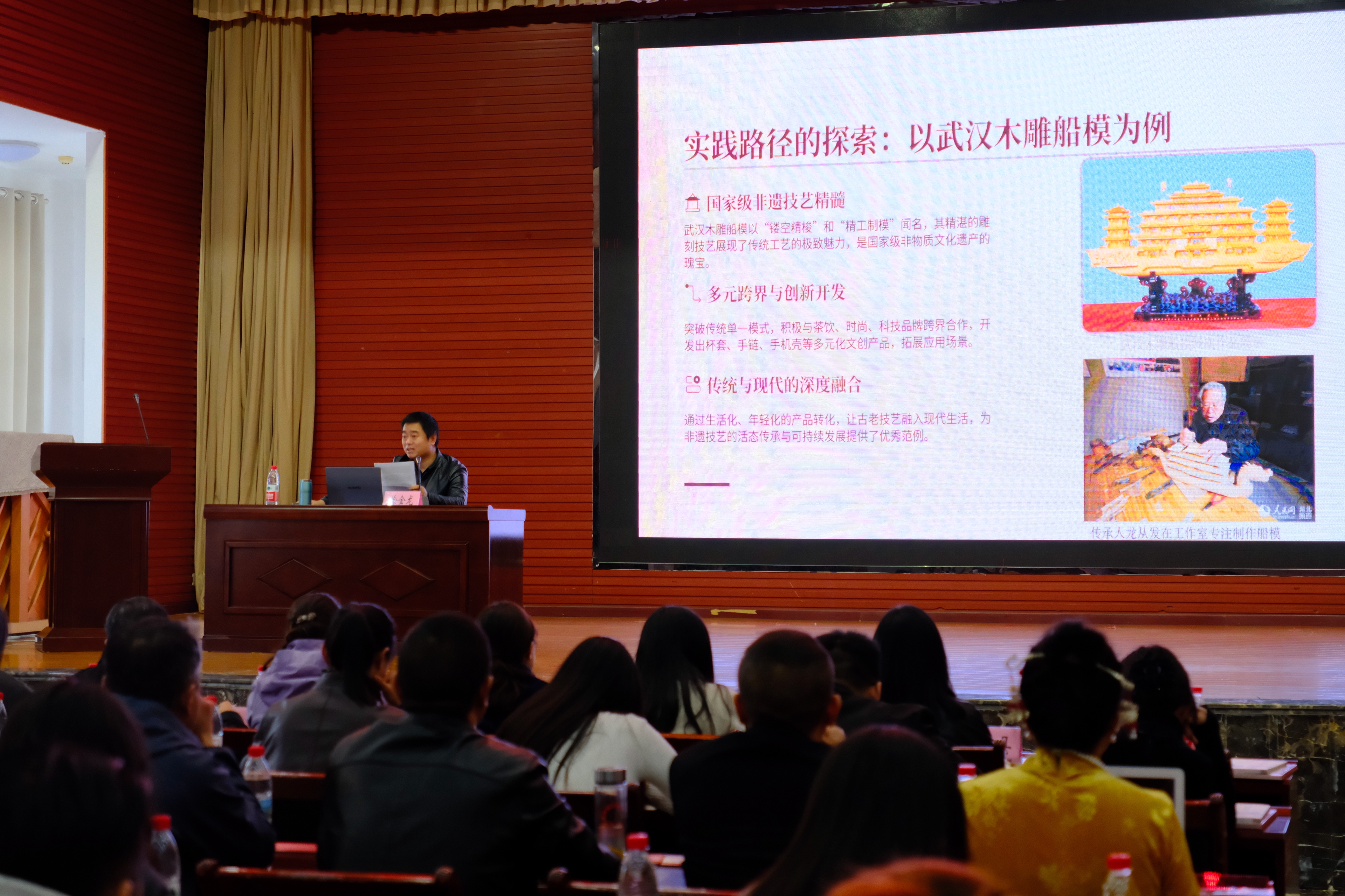 在专家讲座环节,华中师范大学国家文化产业研究中心资源研究所所长徐金龙以《非物质文化遗产文创开发的热潮流与冷思考》为题,从活态遗产的稀缺属性、价值维度的平衡协调、多重关系的系统把握、形态转换的方法论等多角度深入剖析了非遗资源转化的核心辩证关系。通过唐卡危机的典型案例总结出:并非所有非遗项目都适用生产性保护,需严格区分、审慎实施。