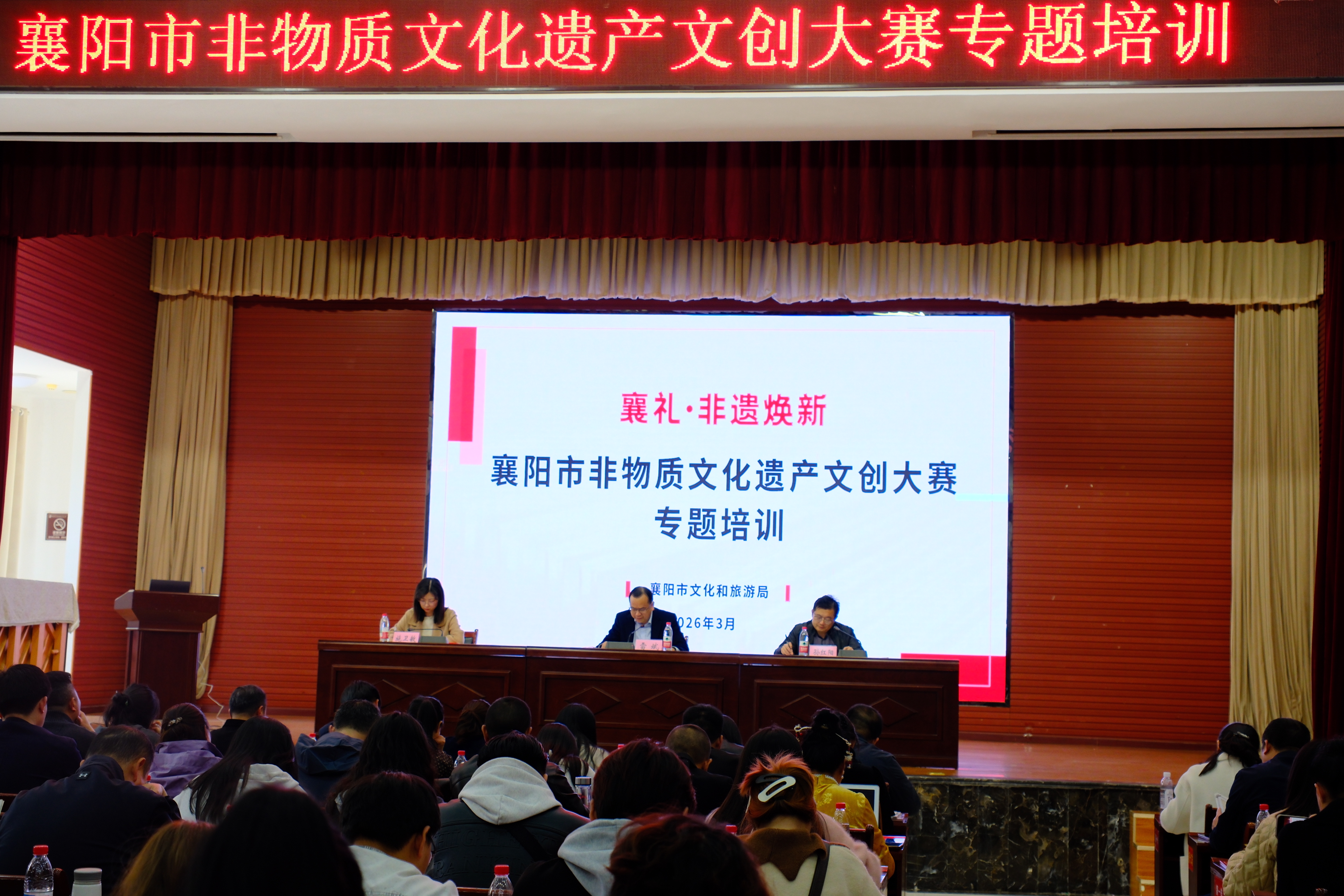 2026年3月27日,由襄阳市文化和旅游局主办的“襄礼·非遗焕新”襄阳市非物质文化遗产文创大赛专题培训在襄城区文化馆落下帷幕。本次培训的参训人员覆盖全市9个县市区的非遗保护工作者、传承人、设计师等,还有湖北文理学院美术学院、湖北文理学院理工学院的数百名师生团队。培训以“挖掘非遗资源,赋能文创转化”为核心,通过政策解读、案例分享与实践指导相结合的方式,为襄阳市非遗保护工作者、传承人及文创从业者搭建起跨界对话平台。